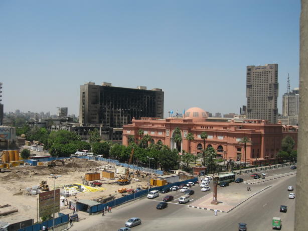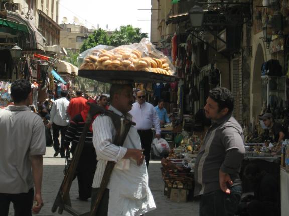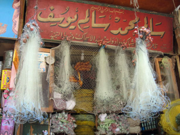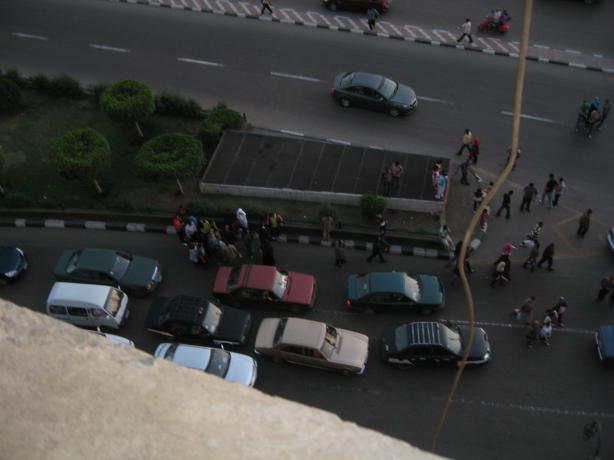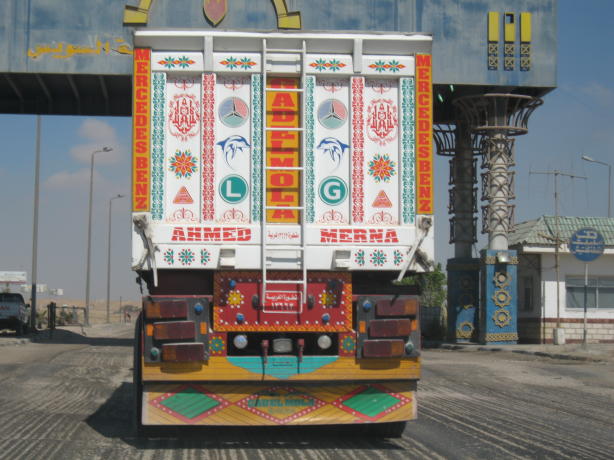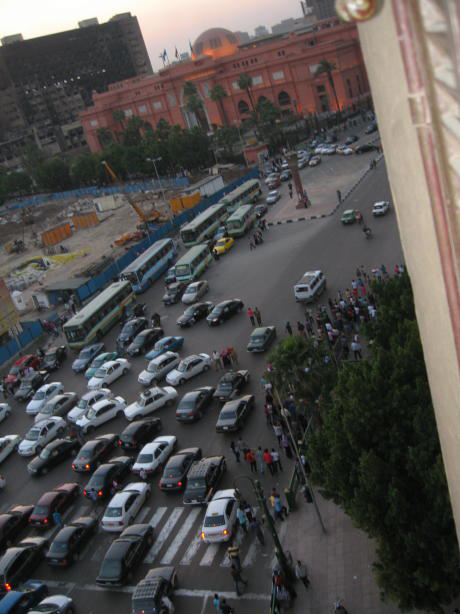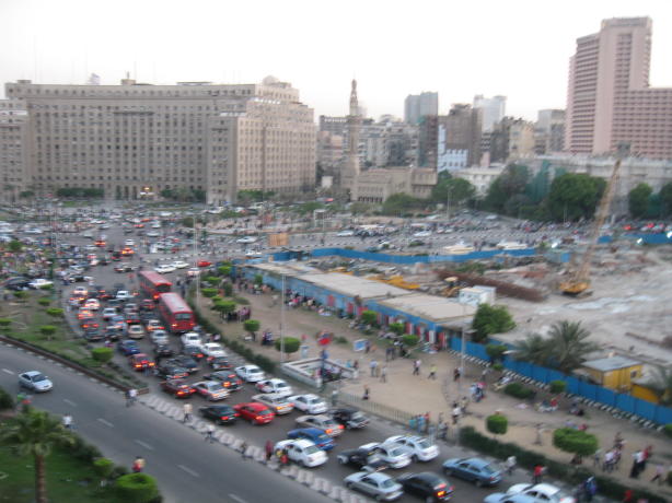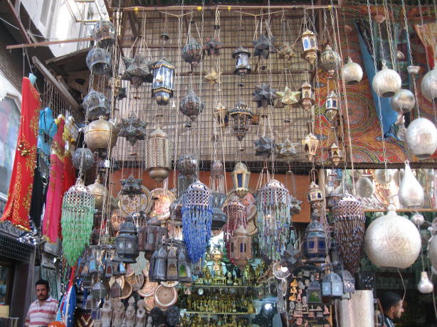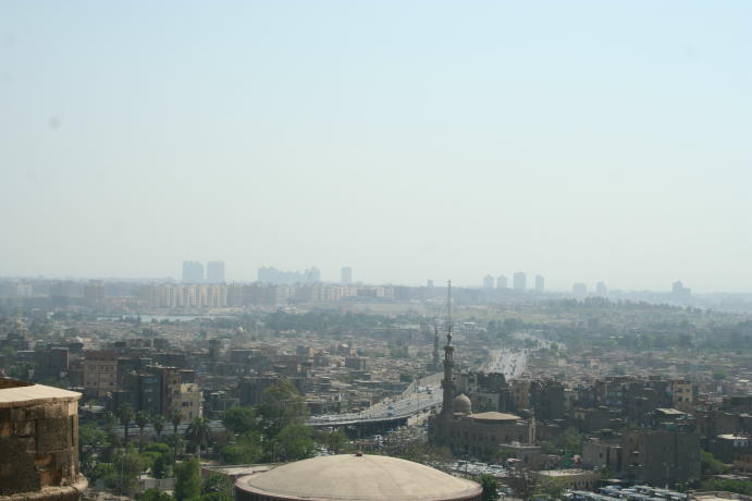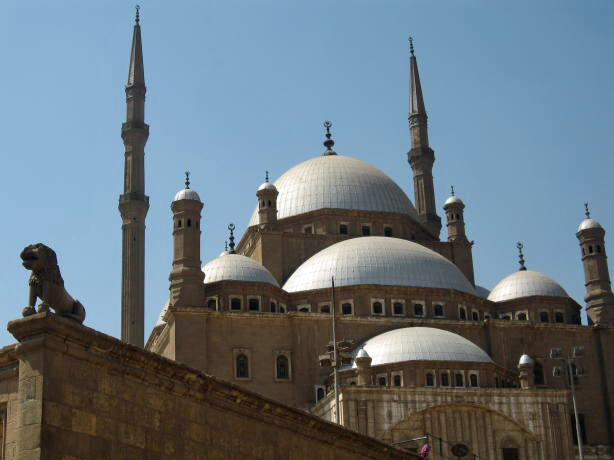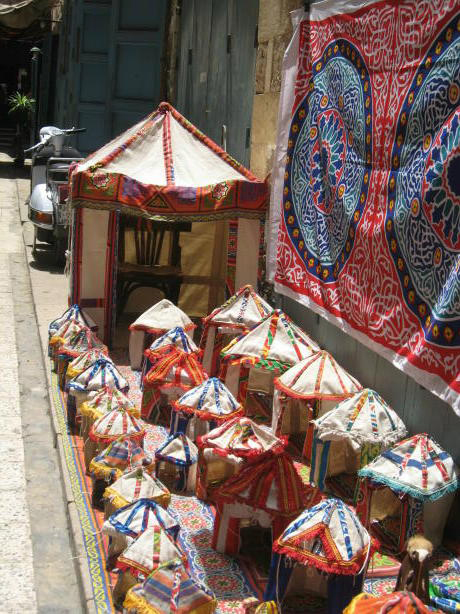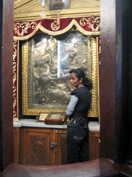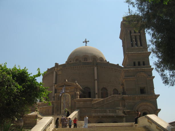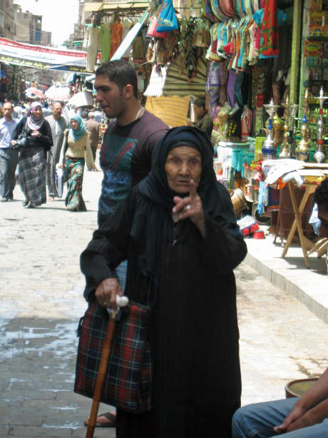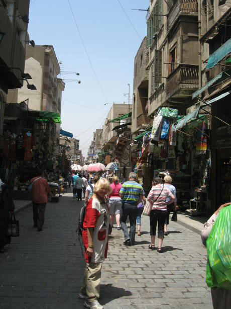 Our Cairo adventure started when the hotel there sent us a car and driver, which cost us about $50 for the 100 miles or so from Suez to downtown Cairo. Alot of cruisers took the local bus but we figured, what the hell, lets be comfortable! One thing we haven't remarked upon is the massive military presence. As of April 2011 the army was firmly in charge and soldiers could be seen everywhere, as here with a tank. Just about every city block had an armored personnel carrier, or at least a truck, filled with troops. We didn't take too many pictures as it can be hazardous to your health to shoot pics of soldiers in a Middle Eastern country under martial law. In a way, we took some comfort from the idea that we'd at least be safe from being kidnapped or assaulted, assuming the army itself behaved. As we got into Cairo, we started to see the Arab Street in action. Here the guy off to the right got mad at the guy in the white shirt because the latter honked at him. So, they stopped right in the middle of the freeway lane and started a frank discussion, stopping traffic for miles. We missed the 10-round finale. Talk about asleep at the wheel. Cairo traffic is legendary. This is the view outside our hotel room. The salmon-colored building is the famous Egyptian Museum, or infamous if you are a demonstrator. The building behind it belongs to Mubarak so they torched it. This is one happenin' place. Getting across this mess is an adventure in itself. Luckily, that didn't happen more than once! This is Tahrir Square, just on the other side. The Square itself is not very big, more like a traffic circle. But demonstrators can fill the ample streets around it and access is easy via a major subway station. At night, small demonstrations were common, as seen at right past the trees where a large group of young men are marching down the street, chanting slogans and blocking traffic. We were alerted to this by the cacophony of horns honking. We declined to go out at night. We were generally exhausted from sightseeing and chose to dine on the balcony and view the madness from a safe vantage point. To some extent, the mood was one of mild anarchy. Here we see groups of people simply walking across dense traffic, as if daring the drivers to run over them. Cairo is often described as a place where you have to hire a cab just to cross the street, so this was a relatively low-risk way of defying the existing order. We forgot to mention the Egyptian Museum. We don't have any pics because they don't allow it and X-ray your bags to make sure you're not packing a Kodak. We were very disappointed in the exhibits. The displays looked like they were last updated when the British were in charge, the labels were yellowed and it appeared they were done on a manual typewriter. Some exhibits were simply stacks of mummies in glass cases with no description whatsoever. Besides the fabulous King Tut artifacts and a few other items the place looks more like an antiquities warehouse than a museum. One place we visited is called Old Cairo, complete with neon Mary. Egyptian Christians live (and die) their faith is ways the pampered West cannot imagine. This is St George's, a Greek Orthodox church. The rotunda is built upon the remains of a tower that was part of the Roman Babylon Fortress. The fall of the Fortress signaled the Arab/Muslim conquest of Egypt. Here we see a woman laying hands on an icon while being photographed. You could easily spot Christian women since they weren't bundled up in hijabs or burkas. Just about every church had a spot where the Holy Family stopped or slept during their exile in Egypt. Here Capt Hub samples water from a well blessed by the baby Jesus. He hoped it tasted better in those days as it was just awful. Back on the Muslim side, this is the monumental Muhammed Ali mosque in Cairo's Citadel. Ali, an Albanian, brought Ottoman rule to Egypt by ruthlessly wiping out the Mamluks. This is the only mosque we have ever visited. The interior is opulent but tacky. Our guide tried some heavy dawa (proselytizing) on us but we weren't interested. He was a good soul and full of accurate information on all counts. The view from the Citadel, which was built to dominate the city. You can see the Nile peeking out toward the left, halfway up. The smog is part of the charm. This is Khan Khalidi, Cairo's famous souk/bazaar. In the good old days you could buy African slaves alongside the spices. Now it's more of a tourist trap. The sellers are ravenous and will try anything to get you to buy. If you like bargaining, this is your haven! Not everybody's a tourist. This woman is not as photogenic or accommodating as our lovely admiral. Sometimes it's good not to speak the language as she knew just a whole lot of words. Like most souks, Khan Khalidi has areas devoted to particular products, in this case spices and other staples. We're not sure how the stuffed animals at the top enhance one's desire for foodstuffs, and were especially puzzled by the use of a dog in a Muslim shop. The PETA people seem nowhere to be found. We're not sure what the tasteful rugs are made of. but when Mark Twain visited he said they used cats. We're sure they steer clear of canine carpeting. It seems they haven't figured out that foxes are related to dogs. The one thing we were offered - free of charge! - by the shopkeepers was cats, any quantity. This shop seemed to specialize in artifacts from the early Pier One dynasty. We were not sure whether some of this stuff was for touristas or local consumption. Actually, the lamps are interesting and wish we would have gleaned one or two. Sometimes we encountered a tents situation. We thought these toys were really cute and regret not buying one, but it's hard to describe haggling with an Egyptian except that it's akin to root canal therapy or proctoscopy. After awhile we gave up trying to buy stuff as they would invariably ask 10 times the actual price of the item and act wounded if you only offere