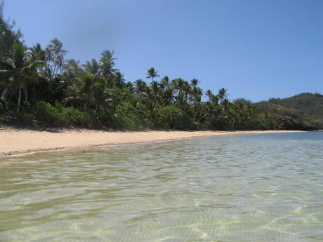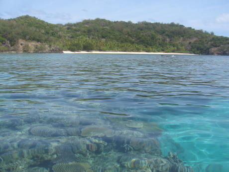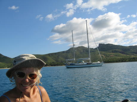 As you can see, the water here is exceptionally clear and the coral very healthy. The beach in the background is on a island with the ironic name of Vanua Levu. This island is apparently considered tabu, which may be why it lacks a resort. After spending three idyllic days at this deserted stretch of paradise we finally decided we had to sail to Lautoka and prepare for our departure to Vanuatu.