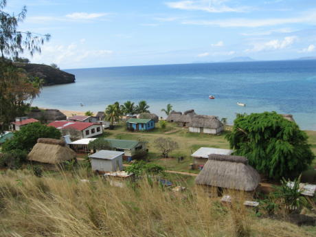 Our first attempt to leave Savusavu was aborted due to a leaky plug in the seawater cooling system that caused a salty fountain in the engine room, not at all a good situation. We returned and spent a week trying to obtain a plug locally but to no avail. Finally, some friends from NZ brought some plugs from Auckland and we were back in the running. Once again, sailing means fixing things in exotic places. We motored west along the S coast of Vanua Levu until we arrived at a large bay on the west side called Bua Bay. It was a nice safe place but therefore boring, so we left the next day for the small island of Yadua. Bua was so nondescript that the only pic we could find to share was the glorious sunset above. Yadua was more our style.