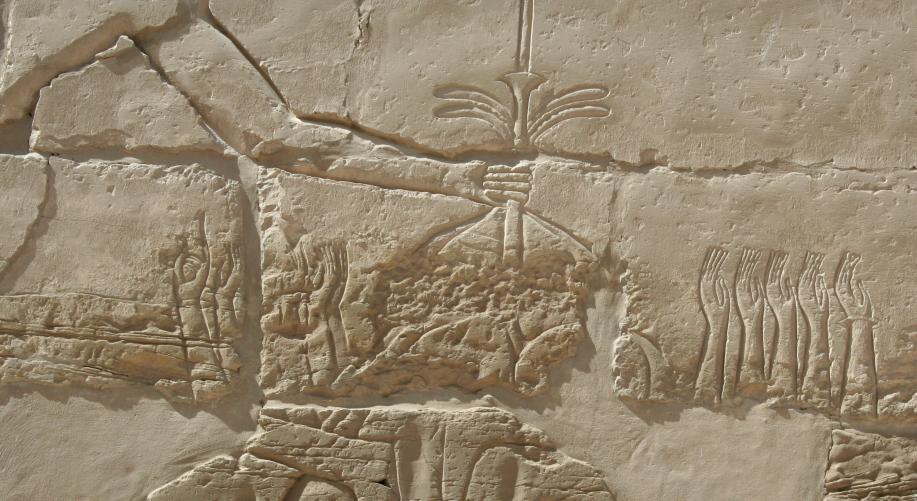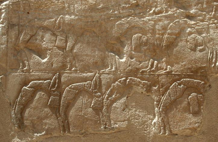 Amazing to see the pigments were still intact. Lined with sphinxes, this street was used during the Opet Festival each year, in which a statue representing Amun Re would be taken to the nearby Luxor Temple. The latter was dedicated to the family triad of Amun, his wife Mut and their son Khonsu. The visit was intended to be of a conjugal nature and was a kind of fertility rite to bless the planting of crops after the annual flood. Here's Luxor Temple at the end of the street. Just inside the pylon, the structure facing was built by Hatshepsut. Pretty much every pharoh added to these temples if they had the resources, so they grew over the centuries. Here's Amun Re depicted in a human form with an apparently happy Mrs Re aka Mut. Most of the ancient statues were literally defaced. The Opet festival was a time of great public celebration. Here we see a line of lifelike dancers bending over backwards. Depicted all over most temples are offerings, in this case bulls trussed up and ready to cook. Yeah, this looks a lot like Karnak, we only know the difference from when the pics were shot.