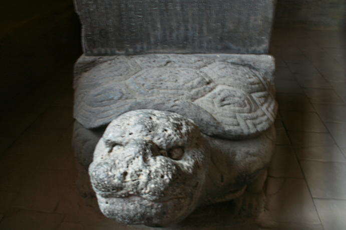 This is a Bodhisattva, one who is not fully enlightened and still subject to the wheel of birth death and suffering according to Theravada Buddhism. We suspect the hands are the Tarjani Mudra, which wards off evil. The statues are Jin Dynasty This very tough-looking turtle is holding up a donor stele. Our guide could read old Chinese and translated some of the inscriptions, which were records of who paid for what renovation or repair.