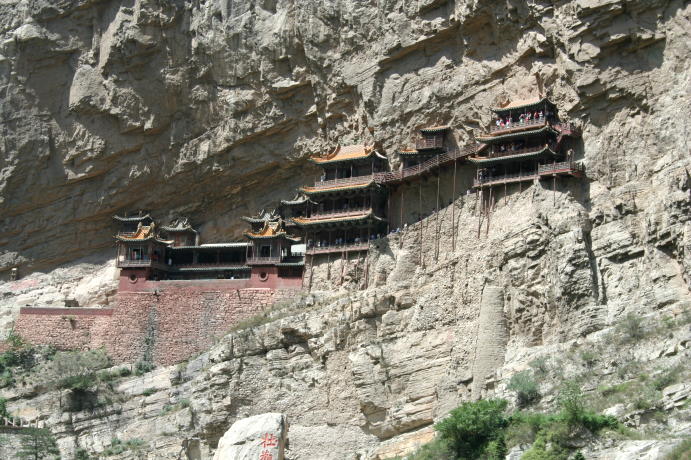 Our next monastery is a bit different. Built on the side of a cliff, this is the famous Hanging Monastery. Built in 491, it has tenaciously hung to the side of this cliff for 1,500 years. It even survived the Cultural Revolution, but just barely.