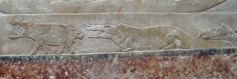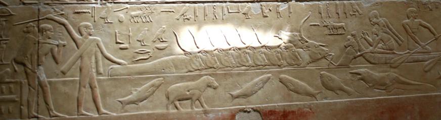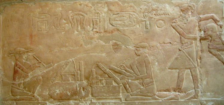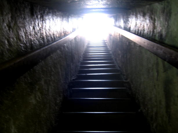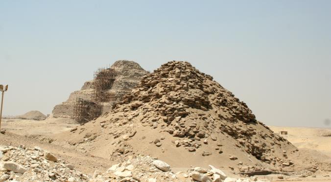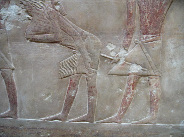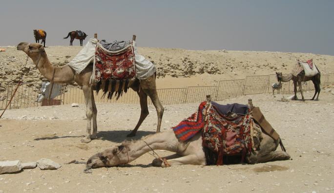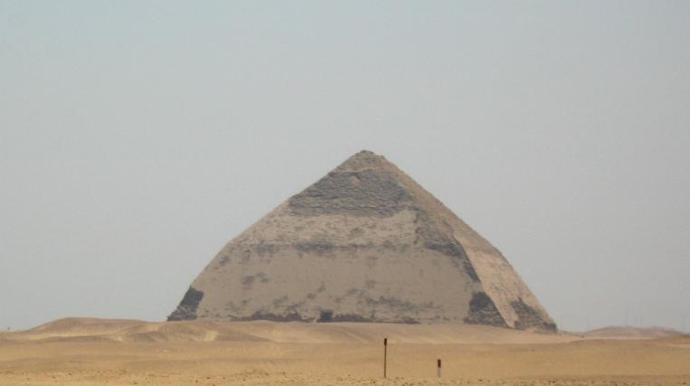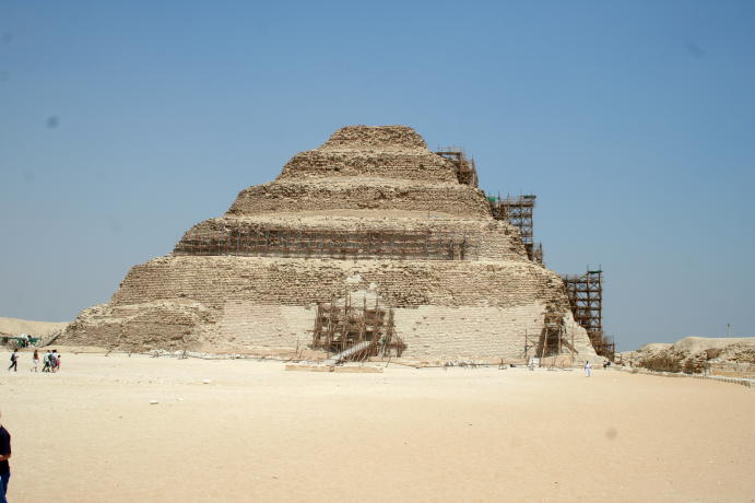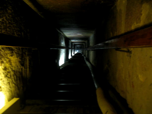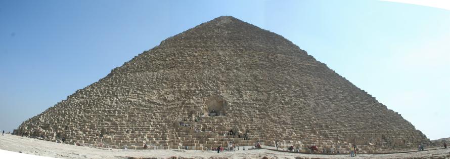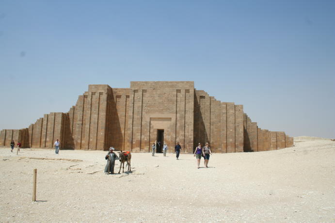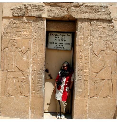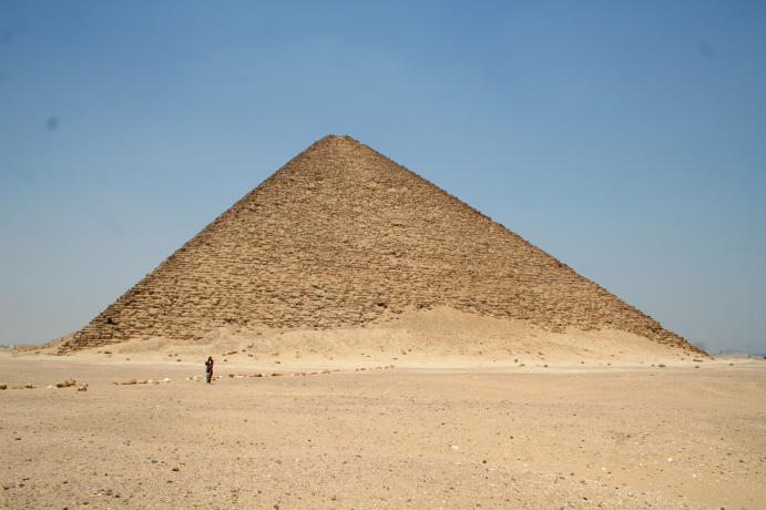 We try to share stuff that's a little off the beaten track and that can even happen when visiting The Pyramids. How? Well, it seems there are lots of 'em out there, not just the Big Three at Giza. You'll get to see those, but first some of their predecessors. First up, The Step Pyramid of King Zosser. It's found at Saqqara, south of Giza and is the first (we think) variation on the earlier tomb design, called by the Arabic name of mastaba (bench). It kinda shows how they shaped up, so to speak. We try really hard to adhere to our policy of not attempting to sound knowledgeable on every damn place we visit, but nonetheless we have add some context to what you see or it's just a bunch of old rubble. Anyway, this is the entrance to the mortuary temple of Zosser's Pyramid. This is where they gave offerings and said prayers for the deceased pharaoh, but not where he was buried. Some days it just doesn't pay to get out of bed. Kings often had high officials buried nearby so they could be of service in the hereafter. This is from the tomb of an official named Idut. It depicts a scene of herding cows into the Nile by tying a calf to the stern of a boat and getting the mother to follow. In the same mural we see a baby hippo entering a very uncertain world. Some things never change. Here we see tax collectors in action, auditing the books while the hapless taxpayer is forced to look on. In extreme cases the tax cheat would literally get the shaft. You can't make this up. At the temple of another official we see a lovely but modestly attired infidel woman. Like most such tombs, this one had many false doors to thwart tomb robbers. In addition, the actual burial chamber was hidden. Nonetheless, it got looted. A pile o' rubble when the outside casing is removed. Memre-Ruka served King Titi. Like many early pyramids it consisted of a mud-brick core encased in stone. Once the casing was hauled off for other projects the core started to fall apart. Going down in the bowels of pyramids can be awfully claustrophobic if not extremely hard on knee joints. This pyramid with the straight down approach is a boon for orthopedic surgeons, not to mention that the passageway is very low and one almost has to crawl. The step were added later, so maybe one was supposed to crawl, but then this was not intended as a tourist attraction when built 4500 years ago. Too bad the architects didn't think of the easy way down, such as an airline chute. The Red pyramid of Sneferu is named for the color of the limestone used for construction. Its the second largest pyramid in Egypt, biggest being Khufu's (Cheops) in Giza. This is likewise a tough climb. Pictures of the interior are forbidden, requiring furtiveness and no flash.