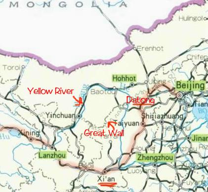 Our Datong adventure was kind of an afterthought. We had 2 days left in the itinerary and decided to add a stop to Datong in order to see some grottoes with statues in them. Like Xian, we didn't quite appreciate the historical significance of the place. Of course , there was the usual cursory Lonely Planet information which does give a very brief but interesting description. By that introduction we decided to stop in Datong on the way back to Beijing. We won't attempt to provide too much history for Datong as you can get a better description from places like this. From the geography above you can see that Datong is close to the Mongolian border and just behind the Great Wall. The land here is arid and the wind blows huge swirls of dust much of the time. Hot as hell in summer, and cold as hell in winter. Enough said. In order to get there, we had to take the train, so let's get going!